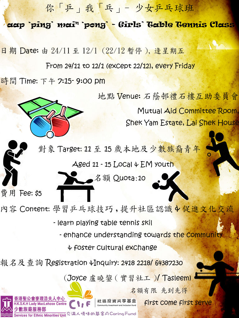 Up & Coming girls' groups~!Table tennis and DIY class